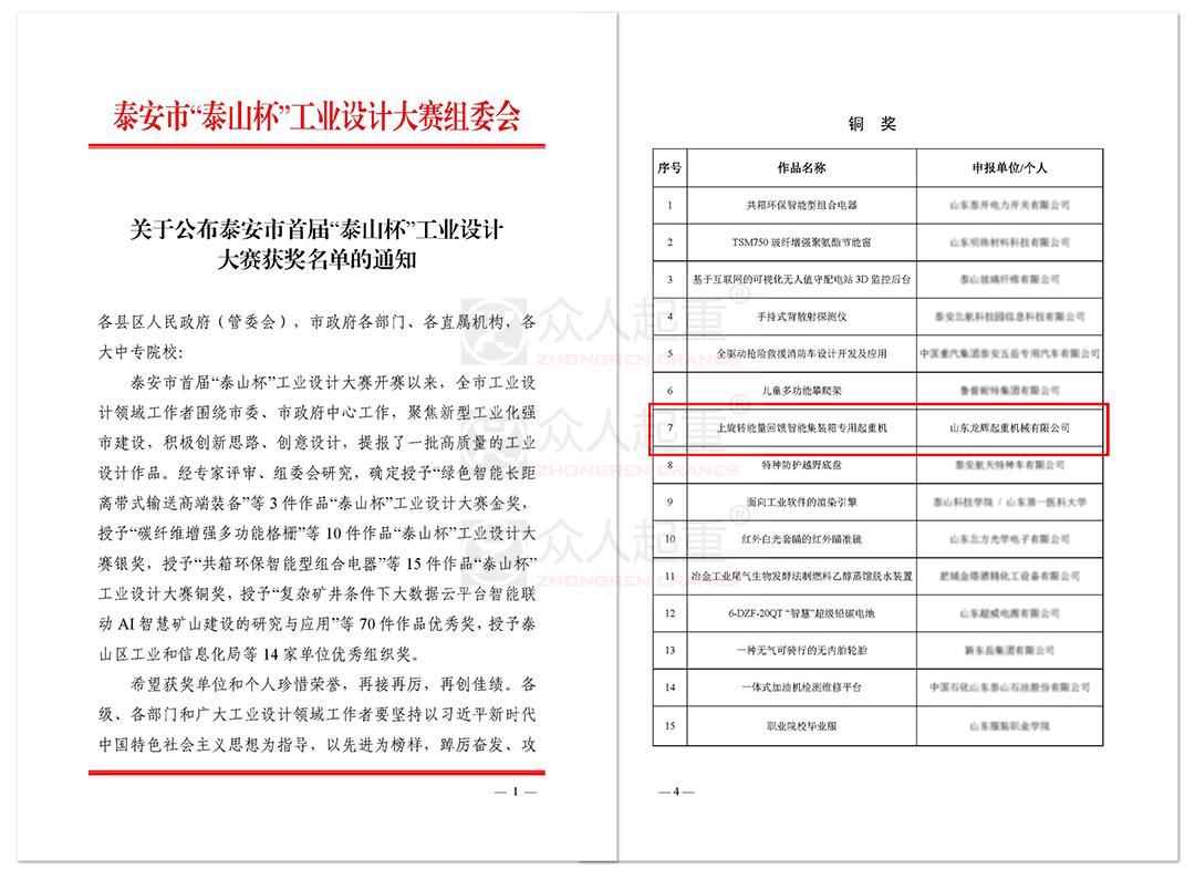 近日,泰安市“泰山杯”工業(yè)設(shè)計(jì)大賽組委會(huì)公布了首屆“泰山杯”工業(yè)設(shè)計(jì)大賽獲獎(jiǎng)名單。山東龍輝起重機(jī)械有限公司憑借“上旋轉(zhuǎn)能量回饋智能集裝箱專用起重機(jī)”榮獲本次工業(yè)設(shè)計(jì)大賽“銅獎(jiǎng)”的榮譽(yù)稱號(hào)。 該產(chǎn)品采用遠(yuǎn)程無(wú)人化、智能化操作及先進(jìn)的防搖擺設(shè)計(jì),達(dá)到國(guó)內(nèi)領(lǐng)先水平。其中能量回饋系統(tǒng)將運(yùn)動(dòng)中負(fù)載上的機(jī)械能變換成電能并回送給交流電網(wǎng),節(jié)電率可達(dá)15%~45%,2022年入選山東省首臺(tái)(套)技術(shù)裝備。 企業(yè)通過(guò)不間斷的技術(shù)融合和產(chǎn)品迭代,為各行業(yè)用戶提供高效可靠的物料搬運(yùn)解決方案。滿足用戶個(gè)性化生產(chǎn)需求的同時(shí),為用戶帶來(lái)全新的集裝箱吊運(yùn)的創(chuàng)新場(chǎng)景體驗(yàn)。 公司建有山東省一企一技術(shù)研發(fā)中心、市級(jí)工業(yè)設(shè)計(jì)中心等多個(gè)研發(fā)創(chuàng)新載體,被譽(yù)為國(guó)家高新技術(shù)企業(yè)。經(jīng)過(guò)三十多年的發(fā)展,現(xiàn)已成為擁有完整產(chǎn)品線和產(chǎn)業(yè)鏈的行業(yè)內(nèi)桿企業(yè)。 堅(jiān)持以客戶為中心,將功能和創(chuàng)新理念融入到每項(xiàng)產(chǎn)品設(shè)計(jì)中。此次獲評(píng),充分展現(xiàn)了龍輝起重在工業(yè)設(shè)計(jì)領(lǐng)域的引領(lǐng)性和創(chuàng)新性,更是近年來(lái)企業(yè)高質(zhì)量發(fā)展的一個(gè)縮影。 未來(lái),公司將繼續(xù)深耕科技創(chuàng)新,為創(chuàng)建科技型、質(zhì)量型、發(fā)展型、學(xué)習(xí)型企業(yè),努力奮斗! |