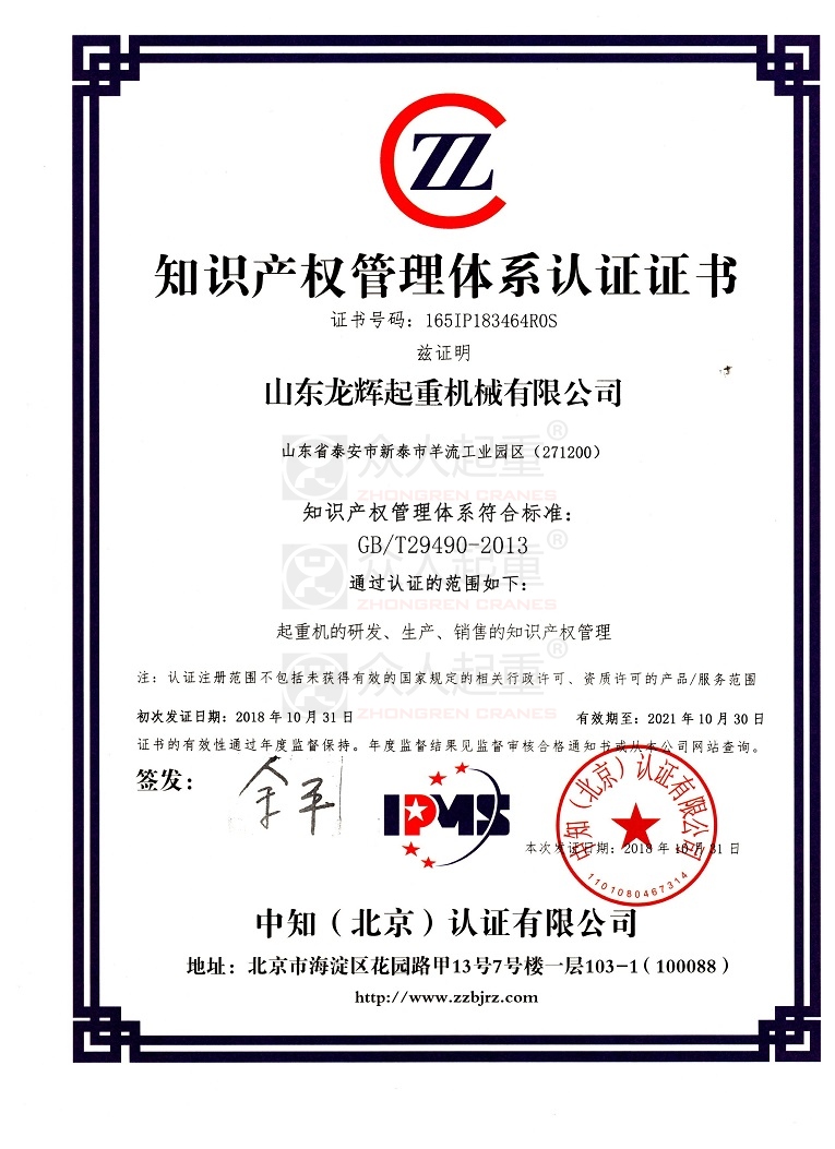 知識產(chǎn)權(quán)管理體系認(rèn)證證書